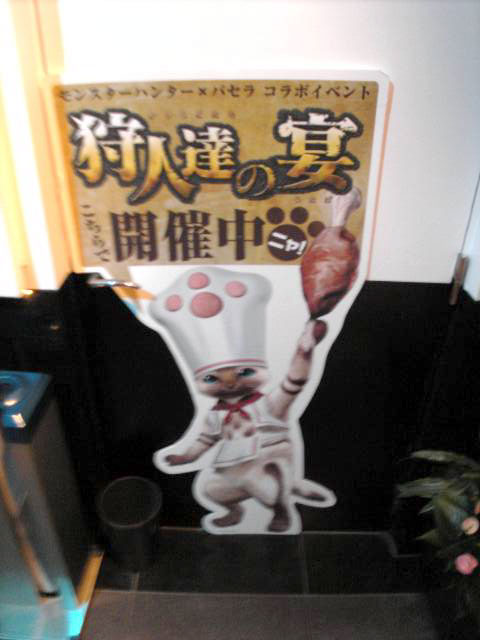 それは兎も角、入り口入ってすぐにアイルーの立て看板。