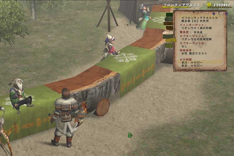 男キャラ→レイア狩猟メイン・多謝想石【白】4つ納品サブ