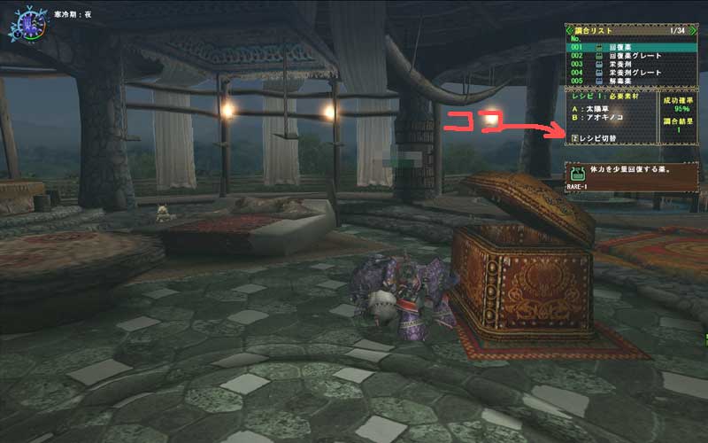 ふと思いついて調合リスト埋めを開始した。折角ナズチ装備作ったしね。