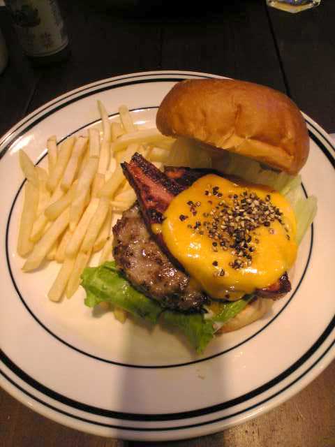 注文したのはチェダーチーズとベーコン、ブラックペッパー満載なバーガー。名前忘れた。