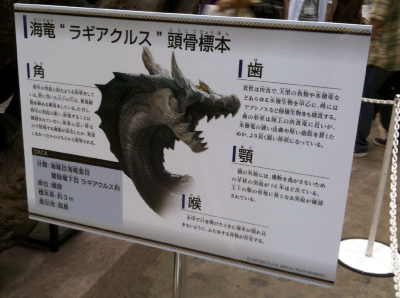 モンハンとコラボしててラギアの標本が展示してあるらしい。また、来場者にはらぎぃ(ラギアがかわいくなったやつ)のキーホルダーもプレゼントされてるとか。ちょっと行ってみてもいいかな、と思ってポスター下に目を落とすと、