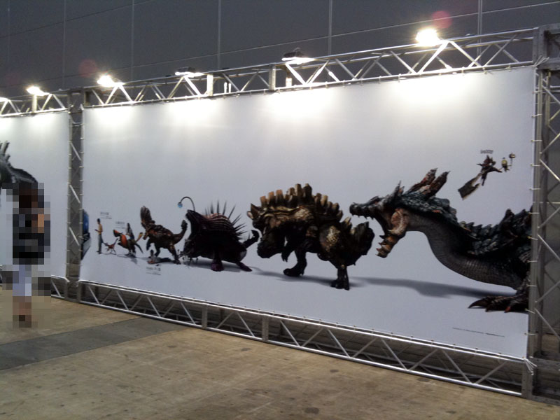 このギャラリー脇で人だかりが出来ていたので何だろうと思い覗きに行くと、トライモンスターの体格比較したムービー(撮影禁止)が流されていた。はっきり言ってこのイベントで一番見る価値の高い物だと断言してもいい。敢えてワガママを言うならもう少し大きいモニターで見たかった。フェスタ完全終了後でもいいからwebで配信してくれないかな。もしくは映像集とか作って販売でもいいや。あれは貴重だと思う。