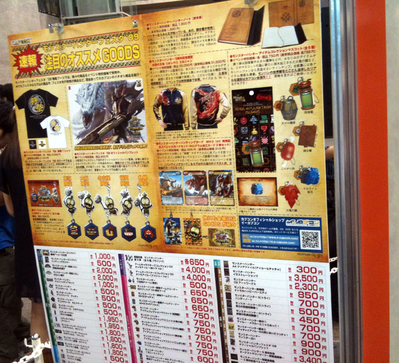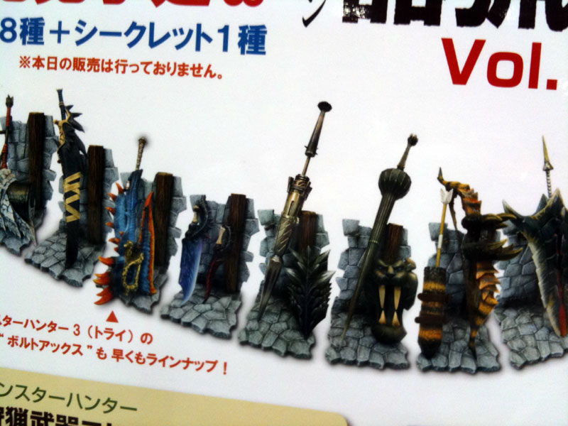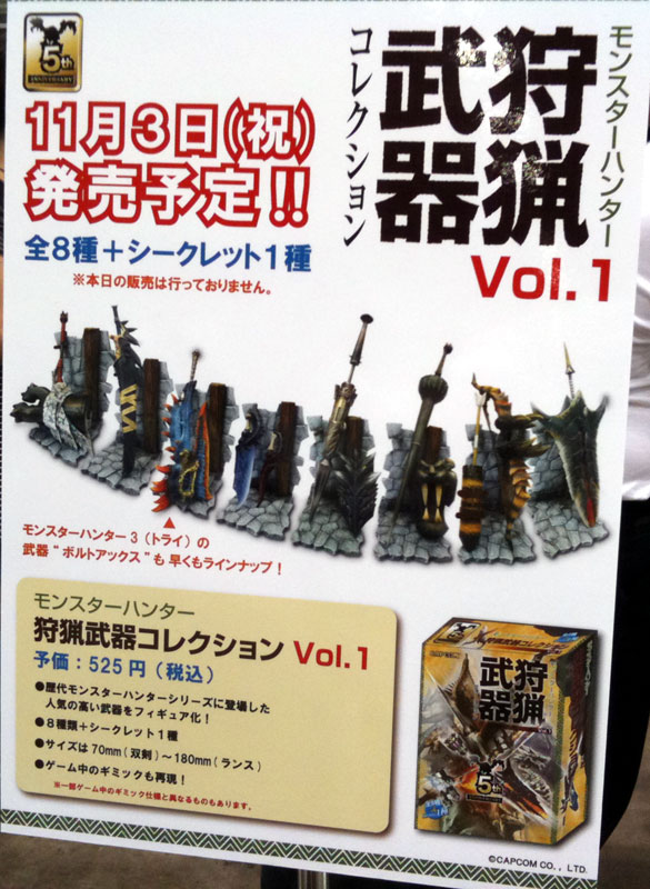 物販コーナー脇に狩猟武器コレクションの告知。天地とかどうでもいいけどガンチャリだけはなんとしてでも。