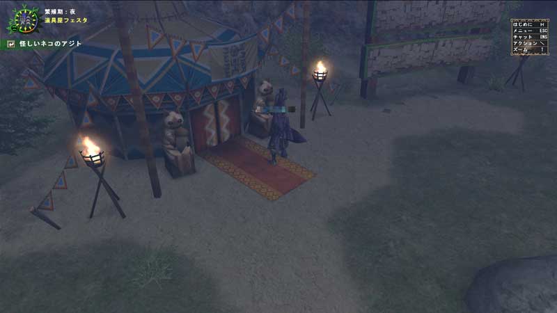 にゃんこ強化期間だろうか。広場に「怪しいネコ」という名のアイルーがうろうろしていた。